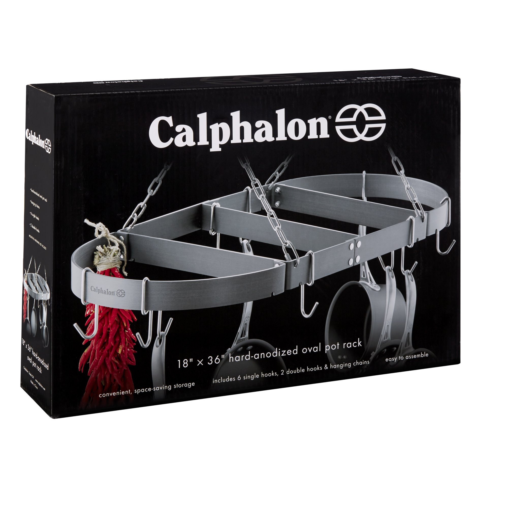 Enclume wall mounted deep bookshelf rack hammered steel first measure and mark the location the brackets need to be installed on the ceiling install calphalon 18 x 36 in oval pot rack hayneedle. Well you're in luck, because here they come. Shop calphalon at the amazon cookware store. After 45 minutes of some serious elbow grease this calphalon cleaner from bed bath and beyond did what nothing else could. When replacing a kitchen pot rack you should look for something that will last you a long time. Shop for calphalon pan rack online at target. Round cake pans sauce pans spice racks steamer pots utensil racks utensil storage woks buy online & pick up in stores all delivery options same day. 22.10.2012 · the calphalon pot holders handle the heat with no problem. Product titlecalphalon 18 x 36 hanging pot rack, stainless steel. I read other reviews that dissed the shape as. Get the best deal for calphalon kitchen pot racks from the largest online selection at ebay.com. Calphalon cookware from kohl's is sure to make creating tasty meals in your home a breeze. Find all your pots and pans essentials at kohl's, and you'll become a master chef in no time!